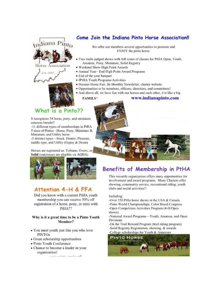 IPtHA is a family oriented club that sponsors a fun and relaxing show environment for new and seasoned Pinto Exhibitors. If you are interested in becoming a member or renewing a membership with the Indiana Pinto Horse Association, please click on the link at the bottom of the page.